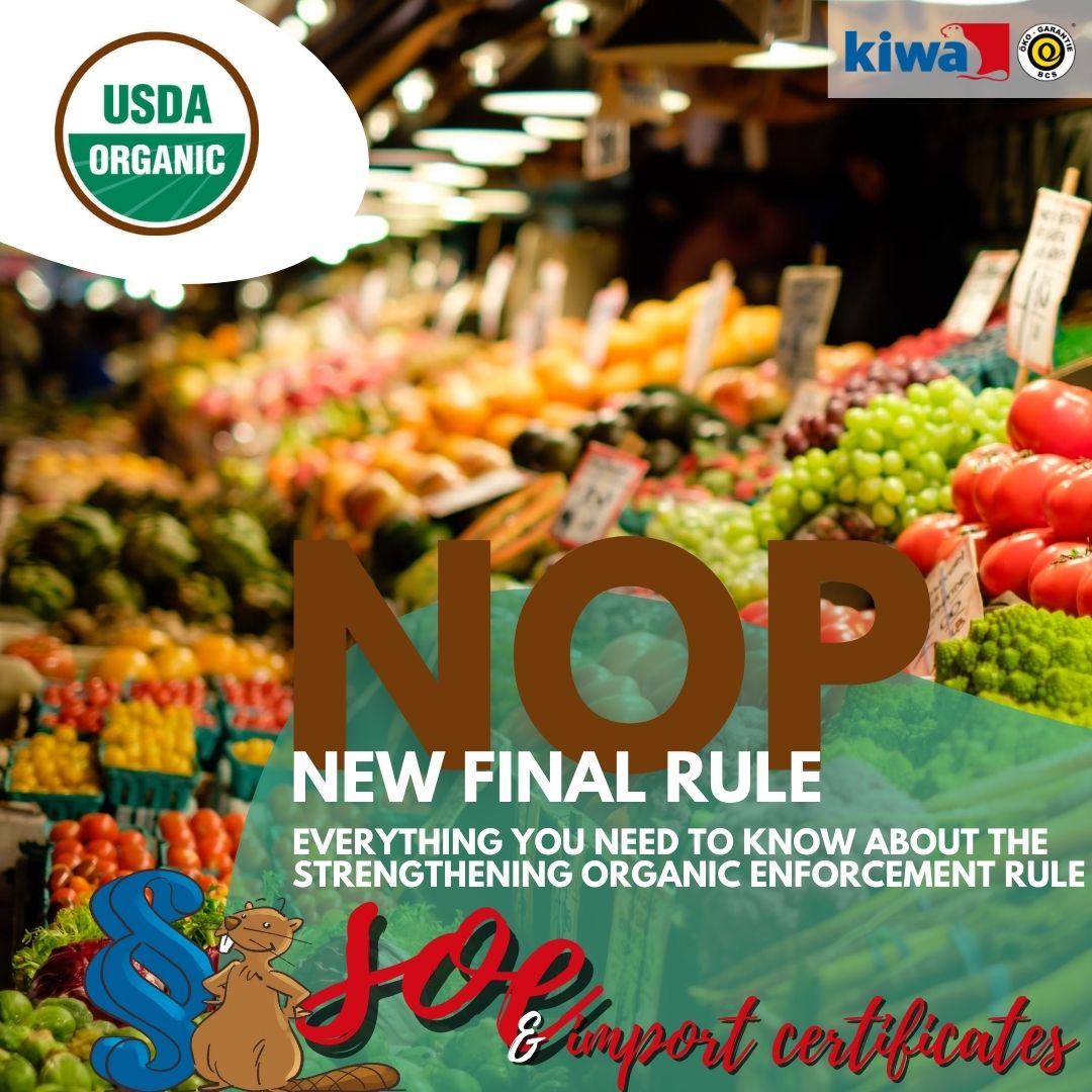 Keep in mind that under the new SOE regulation, all exporters and importers must be certified organic and have an account in the OID to be listed on the NOP Import Certificate. Therefore, be sure to get in touch with your business partners at an early stage already if you work with an uncertified importer and encourage them to apply for certification early. The Regulatory Discretion granted by the NOP so far, will end on September 19th, 2024. This means Kiwa BCS may only issue NOP Import Certificates identifying certified importers.