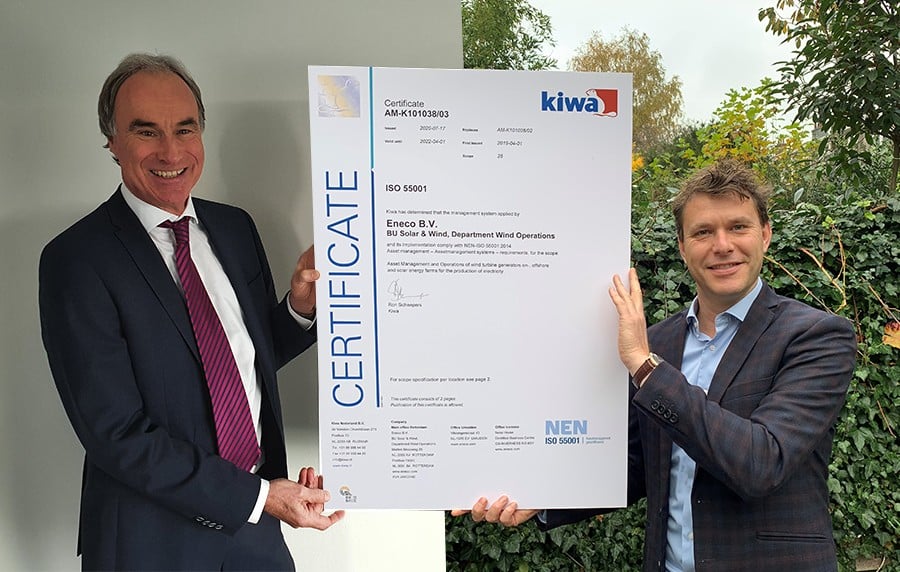 Dutch power company Eneco is now certified by Kiwa for ISO 55001 for Asset Management. In this way, Eneco anchors its objectives regarding sustainability in its business operations through sustainably managed production resources.