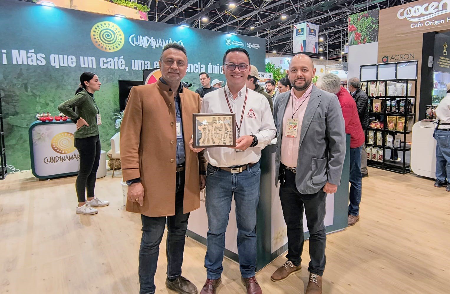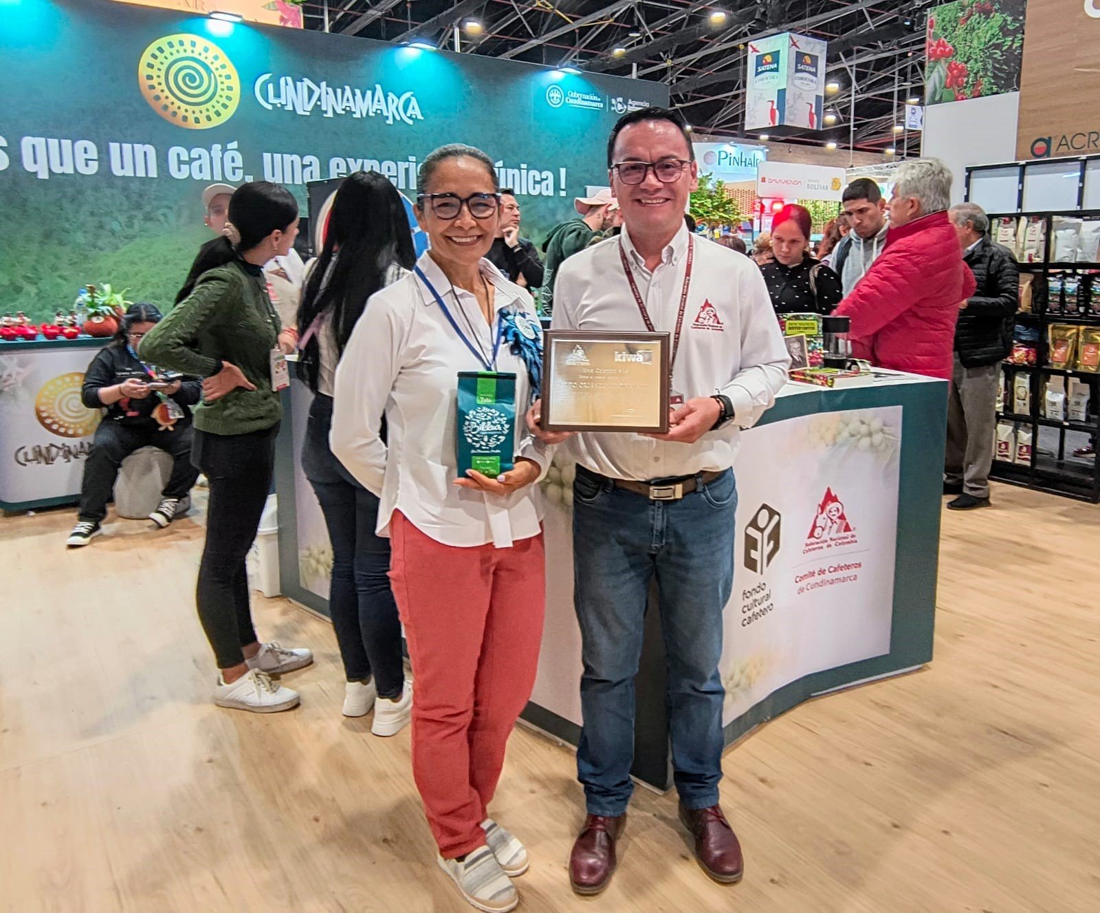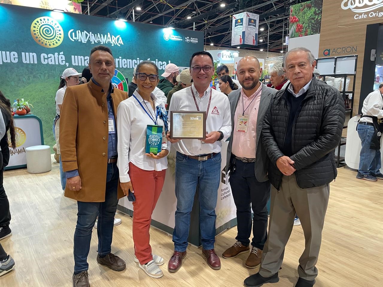 El señor Néstor Javier Robayo Rojas, Director Ejecutivo del Comité Departamental de Cafeteros de Cundinamarca – Grupo Orgánico Cundinamarca, recibió a Alejandro Franco - Gerente de Operaciones Kiwa Colombia - y a Jhon Freddy Moya - Gerente de País Kiwa Colombia - en el marco de la feria de Cafés de Colombia Expo 2024, para hacer entrega del reconocimiento en honor al cumplimiento de 14 años como socios para el progreso en procesos de certificación. Durante este recibimiento, los mencionados gerentes tuvieron la oportunidad de interactuar con la señora Isaura Bermúdez, representante de los productores asociados, quien hace parte del grupo desde su conformación y, con su finca ubicada en Guayabal de Síquima, ha llevado el legado del cultivo de café orgánico de generación en generación.
