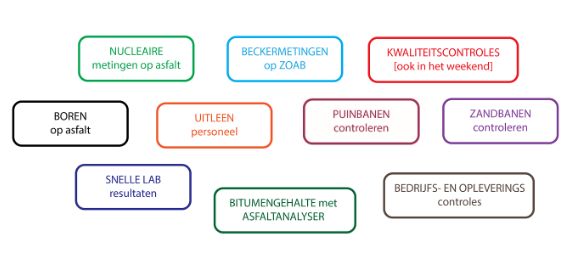 Naast de reguliere, geaccrediteerde opleveringscontroles kunnen wij met u meedenken en meehelpen op verschillende andere gebieden. Denkt u hierbij aan nucleaire metingen op asfalt, Beckermetingen op ZOAB, kwaliteitscontroles (ook in het weekend), boren op asfalt, controleren van puinbanen en zandbanen, bedrijfs- en opleveringscontroles, bitumengehalte met asfaltanalyser of de uitleen van personeel.